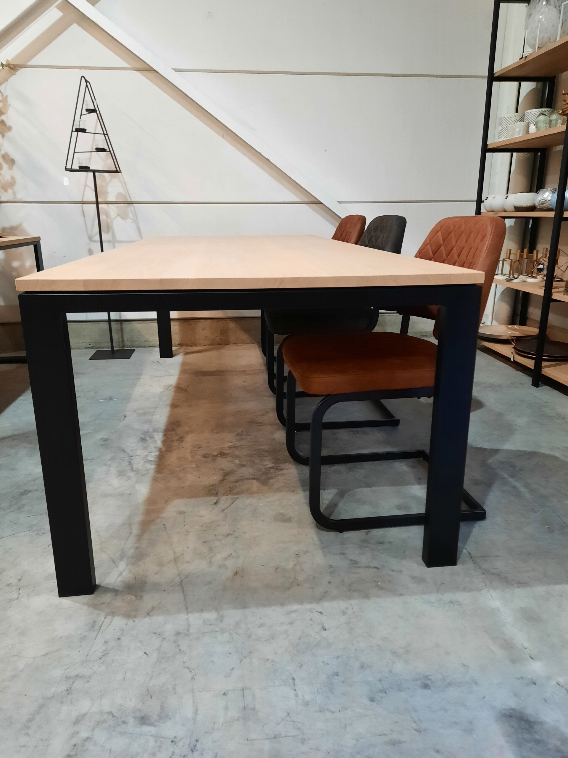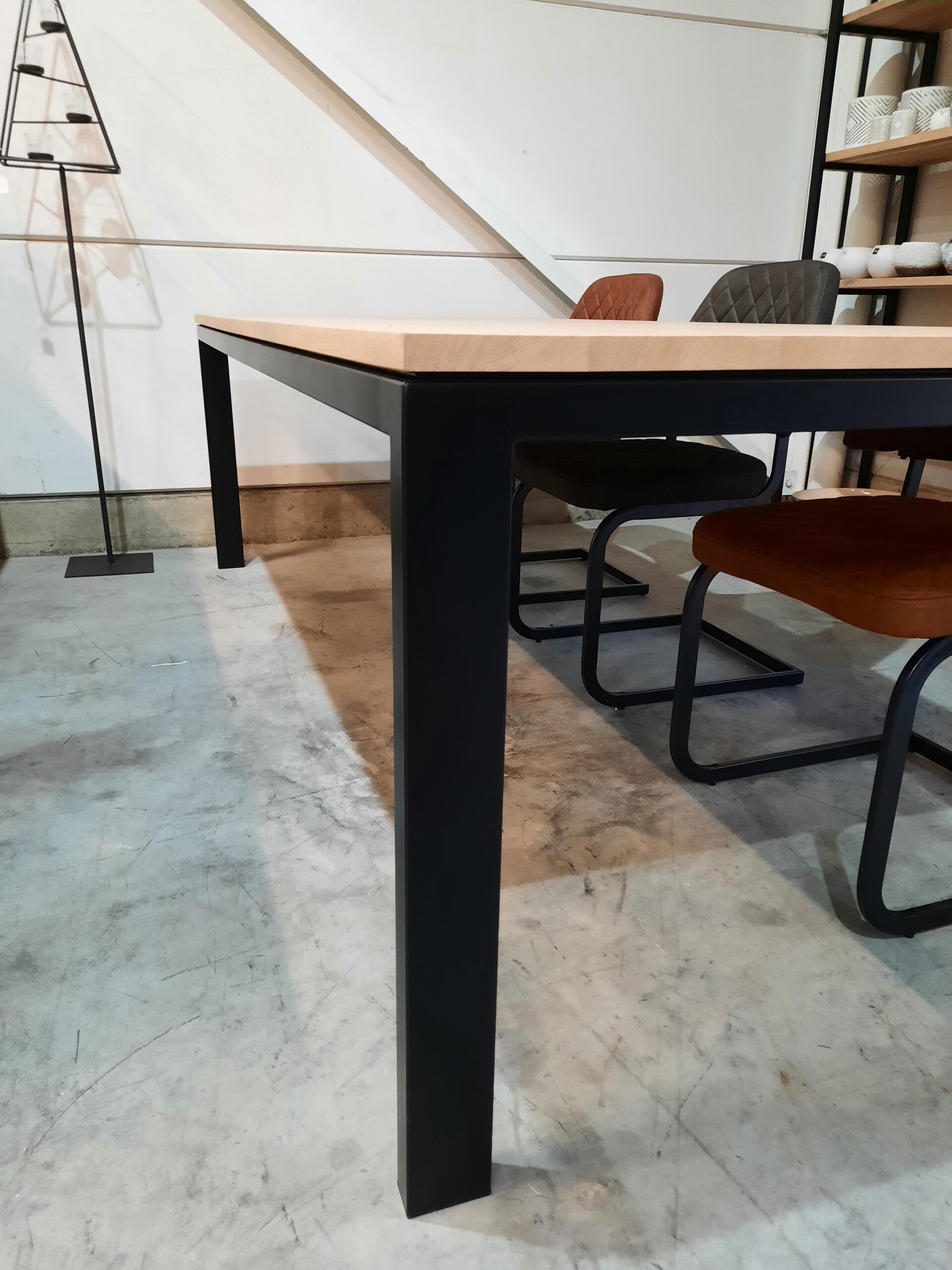 eettafel in massieve eik met zwevend blad
