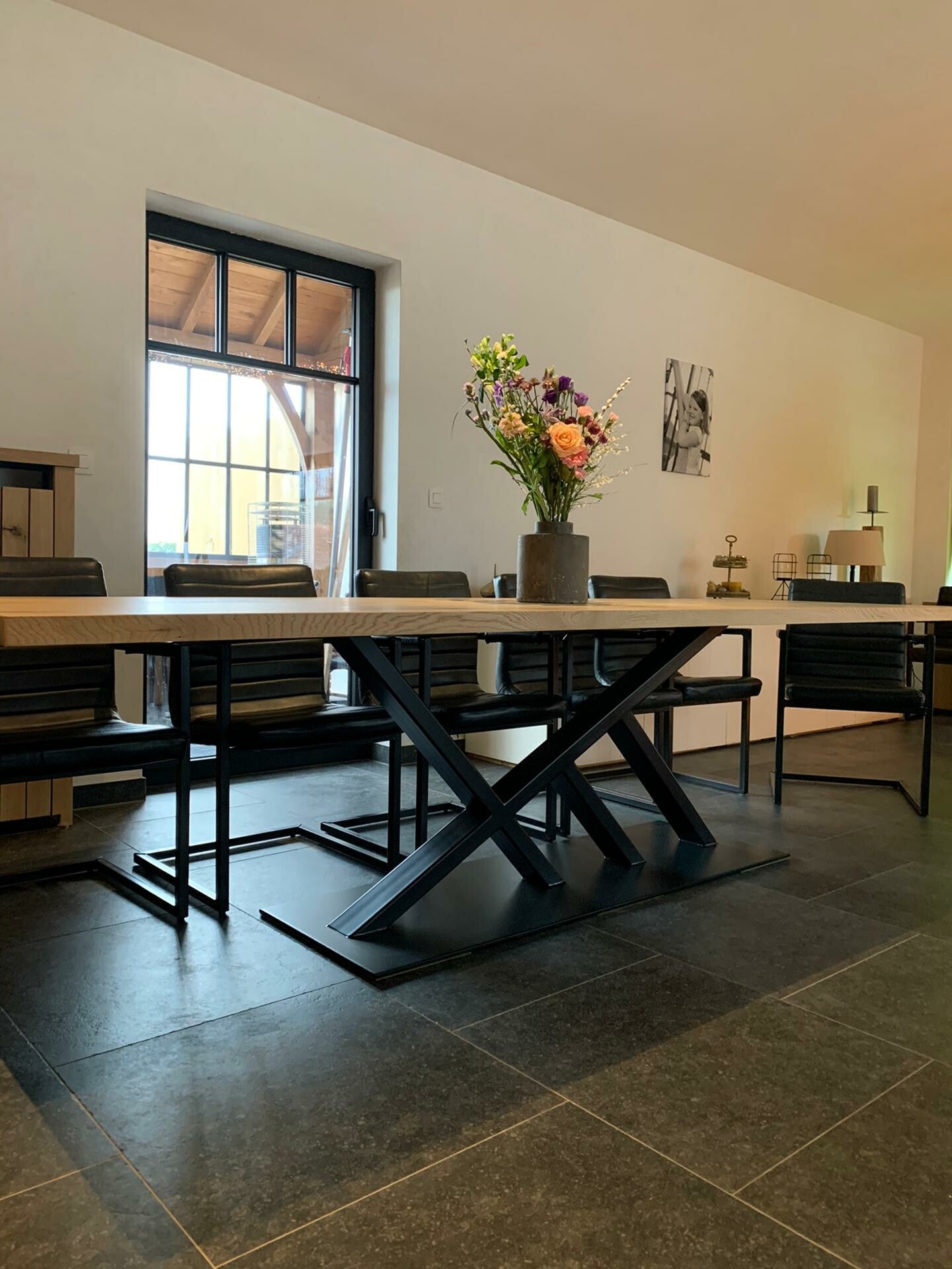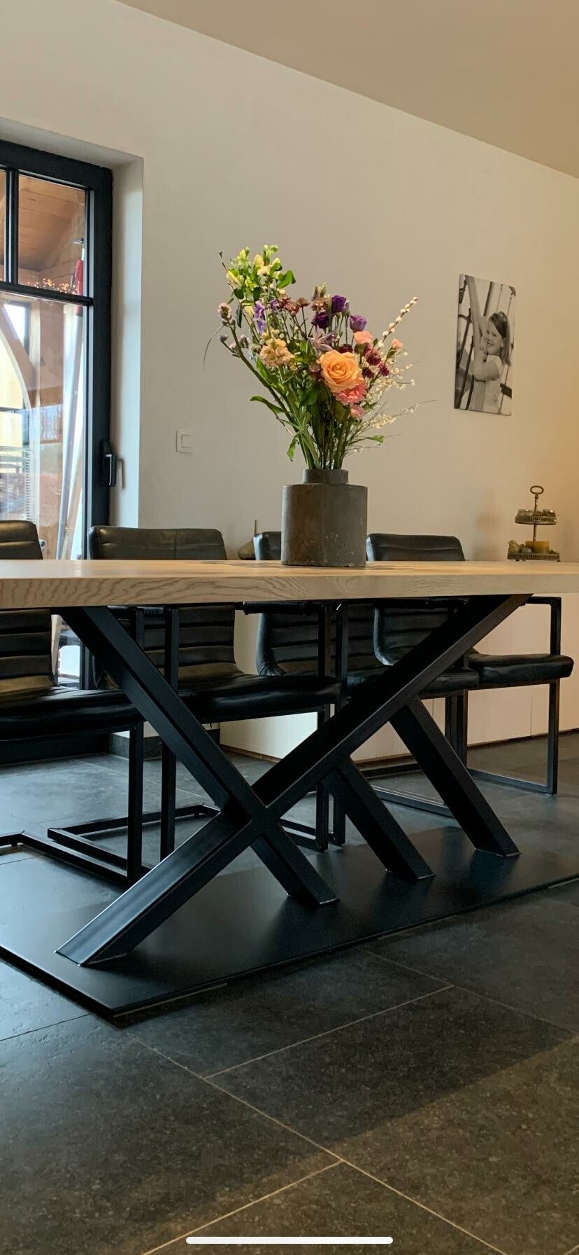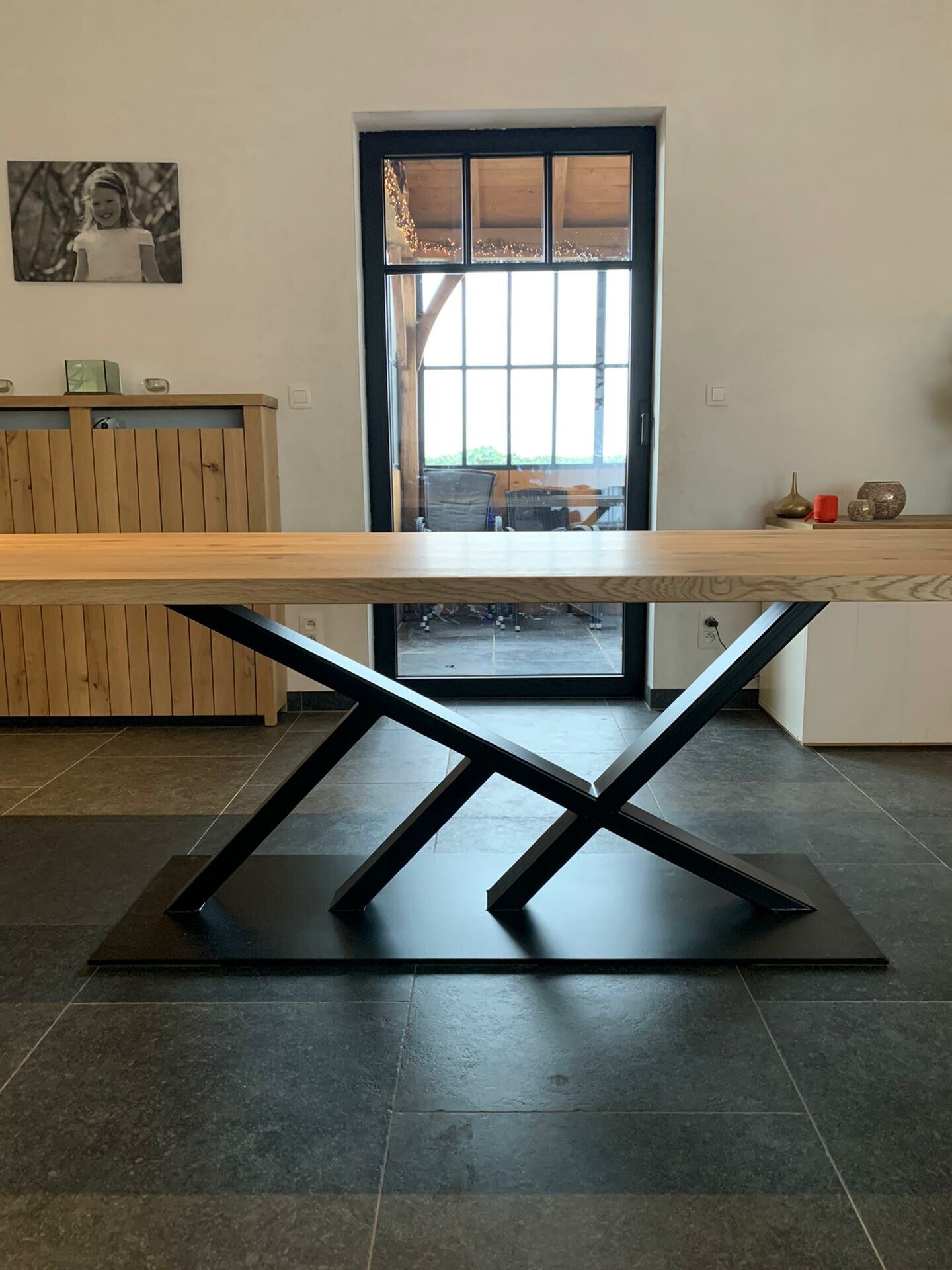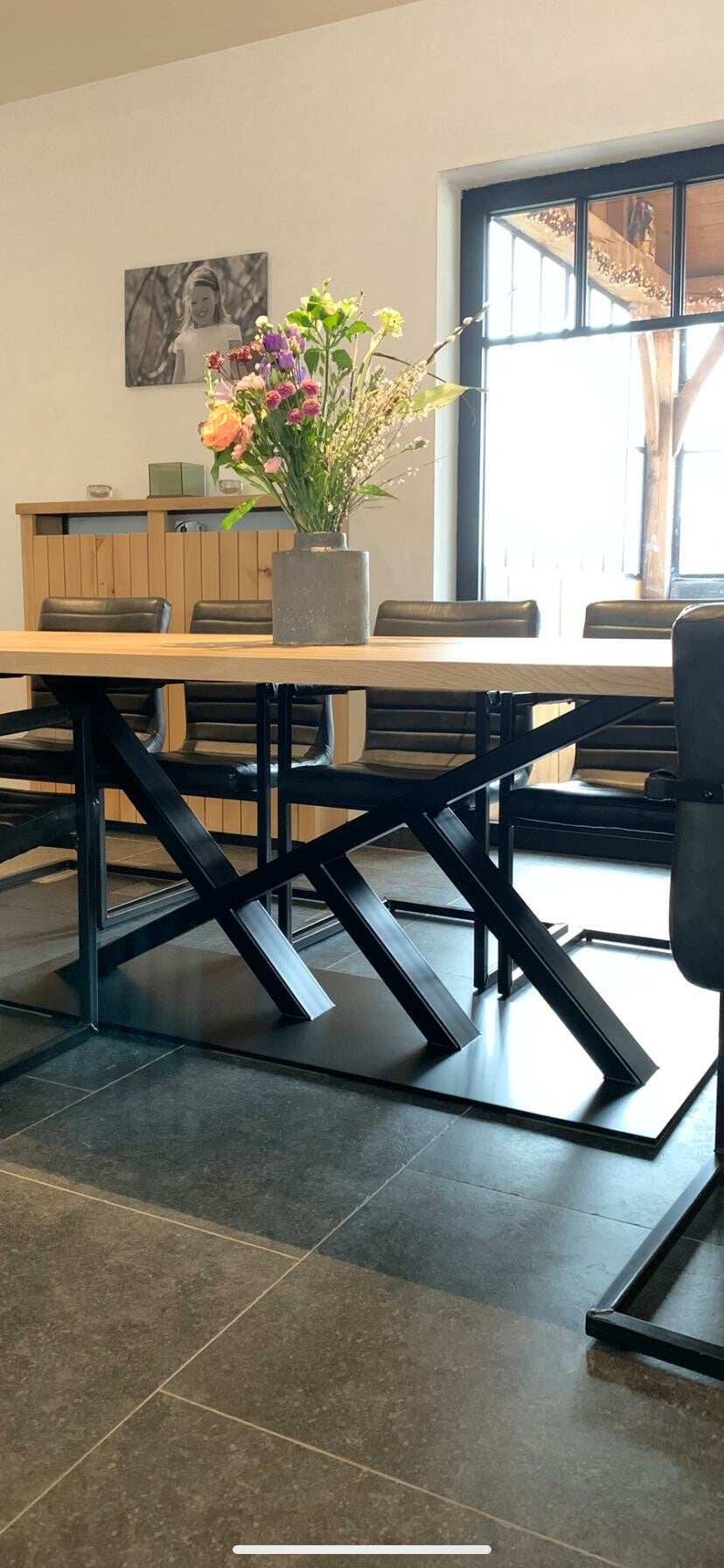 deze tafel is met een massief eikenblad van 4 cm dikte