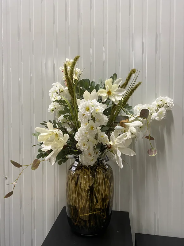 Het Golden boeket is een luxe en weelderig bloemstuk met een hoogte van 90 cm. Dit elegante boeket in warme gouden tinten voegt een chique en sfeervol accent toe aan je interieur en is ideaal als opvallende blikvanger in de woonkamer, hal of kantoor. Het Golden boeket combineert hoogwaardige bloemen met een stijlvol ontwerp voor een tijdloos en luxe decoratie-element.