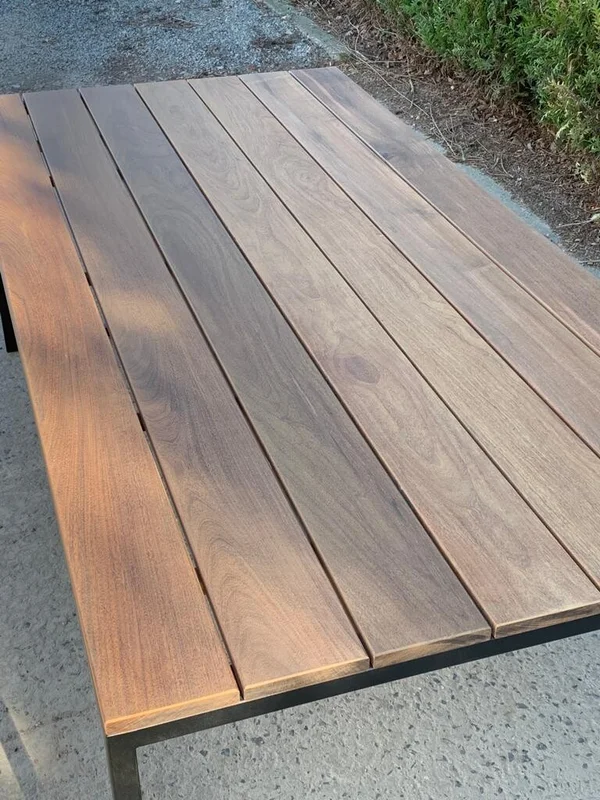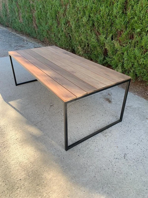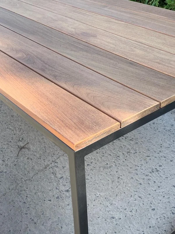De buitentafel met U-onderstel is gemaakt van hoogwaardig Ipé-hout, wat het een robuuste en duurzame keuze maakt voor buitengebruik. Het onderstel bestaat uit 30×30 mm buisprofielen, gemetaliseerd en gepoedercoat voor extra bescherming tegen de elementen. Het blad heeft een dikte van 21 mm, en de afmetingen op de foto zijn 220×100 cm, met een hoogte van 76 cm. Deze tafel is een uitstekende keuze voor een stijlvolle en functionele tuin- of terrasinrichting. Maatwerk is mogelijk om de tafel aan jouw specifieke wensen aan te passen.