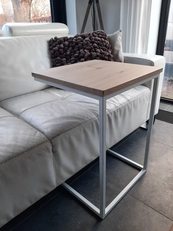 Deze laptoptafel/bijzettafel is gemaakt van massieve eik en heeft een blad dat behandeld is met een 2-componenten coating om het te beschermen tegen vocht en vetvlekken. De robuuste eiken constructie zorgt voor duurzaamheid en een tijdloze uitstraling in je interieur. De wachttijd voor levering is 3 tot 4 weken, en maatwerk is mogelijk om de tafel aan je specifieke wensen aan te passen.