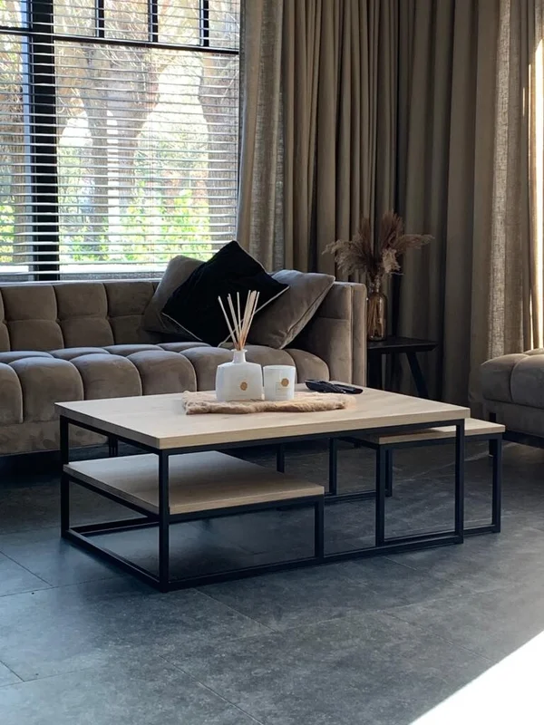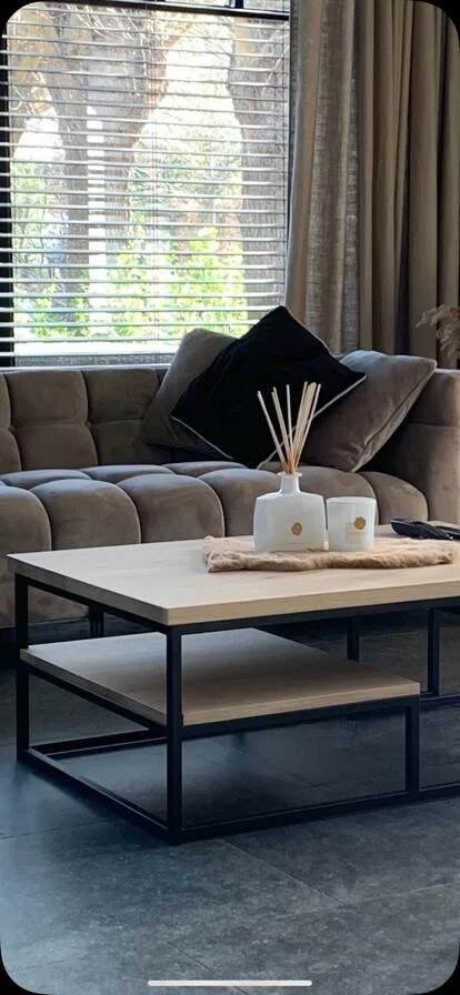 Salontafel met half dubbel verdiep Deluxe, vervaardigd uit massieve eik met een robuuste bladdikte van 3 cm. Het blad is behandeld met een 2-componenten coating voor een duurzame, vet- en waterafstotende afwerking. Stevig onderstel met buisprofielen van 20/20 mm in RAL 9005. Maatwerk mogelijk voor een perfect passend design.