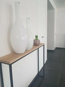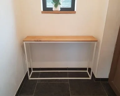 Sidetable in massieve eik met een bladdikte van 23 mm. Het eikenblad is behandeld met een 2-componenten invisible coating, waardoor het volledig waterafstotend is. Maatwerk mogelijk. Wachttijd: 4-5 weken.