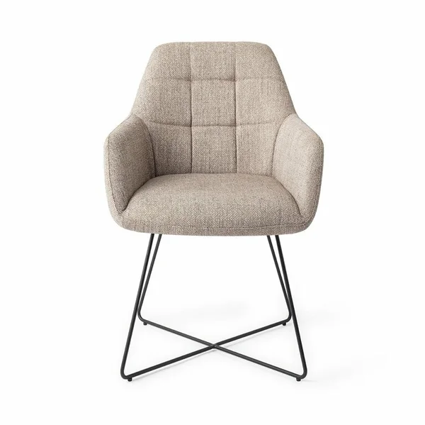 Een eerste indruk maak je maar één keer. En bij de Noto Cross Black eetkamerstoel zit dat wel goed. De elegante vormgeving en het 9-vaks patroon in de rugleuning zorgen voor een stijlvol statement aan de eettafel. Niet alleen de eerste indruk is geslaagd: dankzij het comfortabele zitvlak en de duurzame stoffering geniet je jarenlang van deze stoel. De zitting is bekleed met een stevige stof van polyester en acryl, en het metalen onderstel is afgewerkt met een poedercoating.