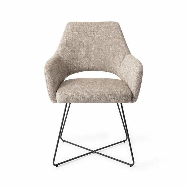 De Yanai eetkamerstoel Cross is een prachtig voorbeeld van tijdloos design. De strakke lijnen van de rugleuning vormen een stijlvol contrast met de zachte, ronde inkeping. De zitting is bekleed met een hoogwaardige polyester stof met een grove weving, wat zorgt voor een speelse uitstraling én extra duurzaamheid. De stoel is verkrijgbaar in verschillende kleuren die mooi combineren met elkaar en met diverse interieurstijlen.