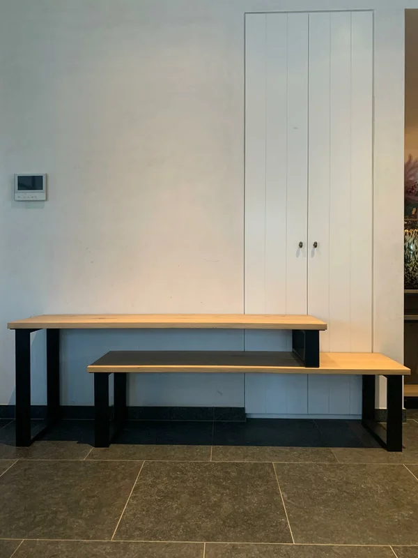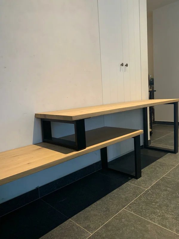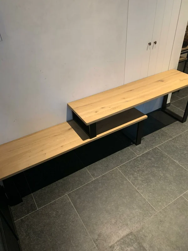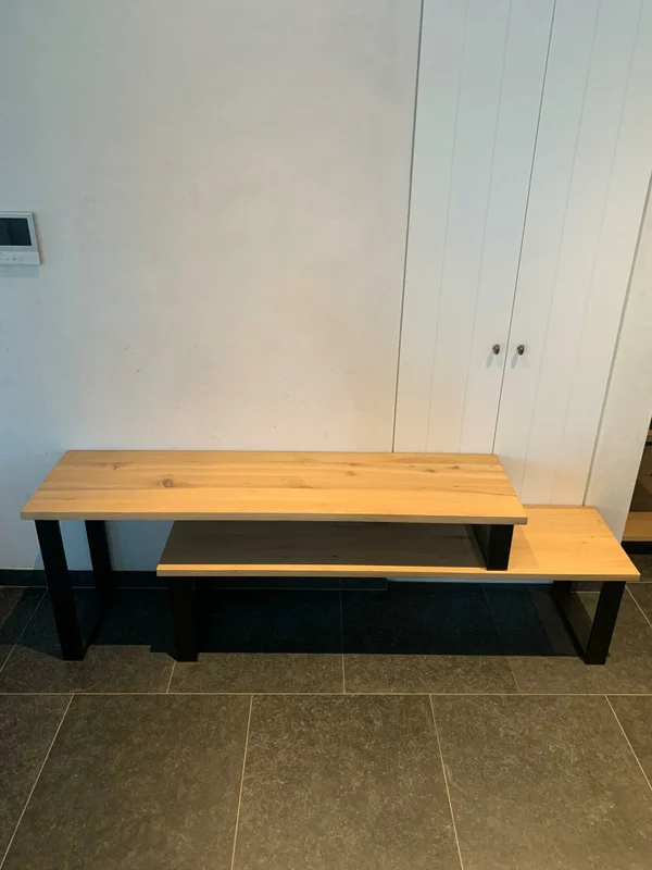 Tv-meubel inschuifbaar in massieve eik met inschuifbare delen, bladdikte van 2,3 cm en behandeld met een 2-componenten coating voor volledige waterafstotendheid. Buisprofielen van 80/20 mm voor een robuuste uitstraling. De lengte per deel is 160 cm, uitschuifbaar tot 300 cm. Maatwerk mogelijk voor een perfect aangepast meubel aan uw ruimte en stijl.